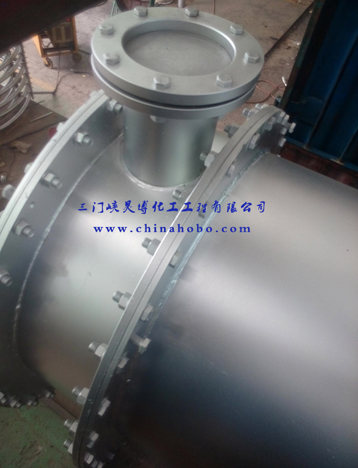 操作人員在換熱器設(shè)備上打上三門峽昊博化工工程有限公司標示和電話0398-2918156
