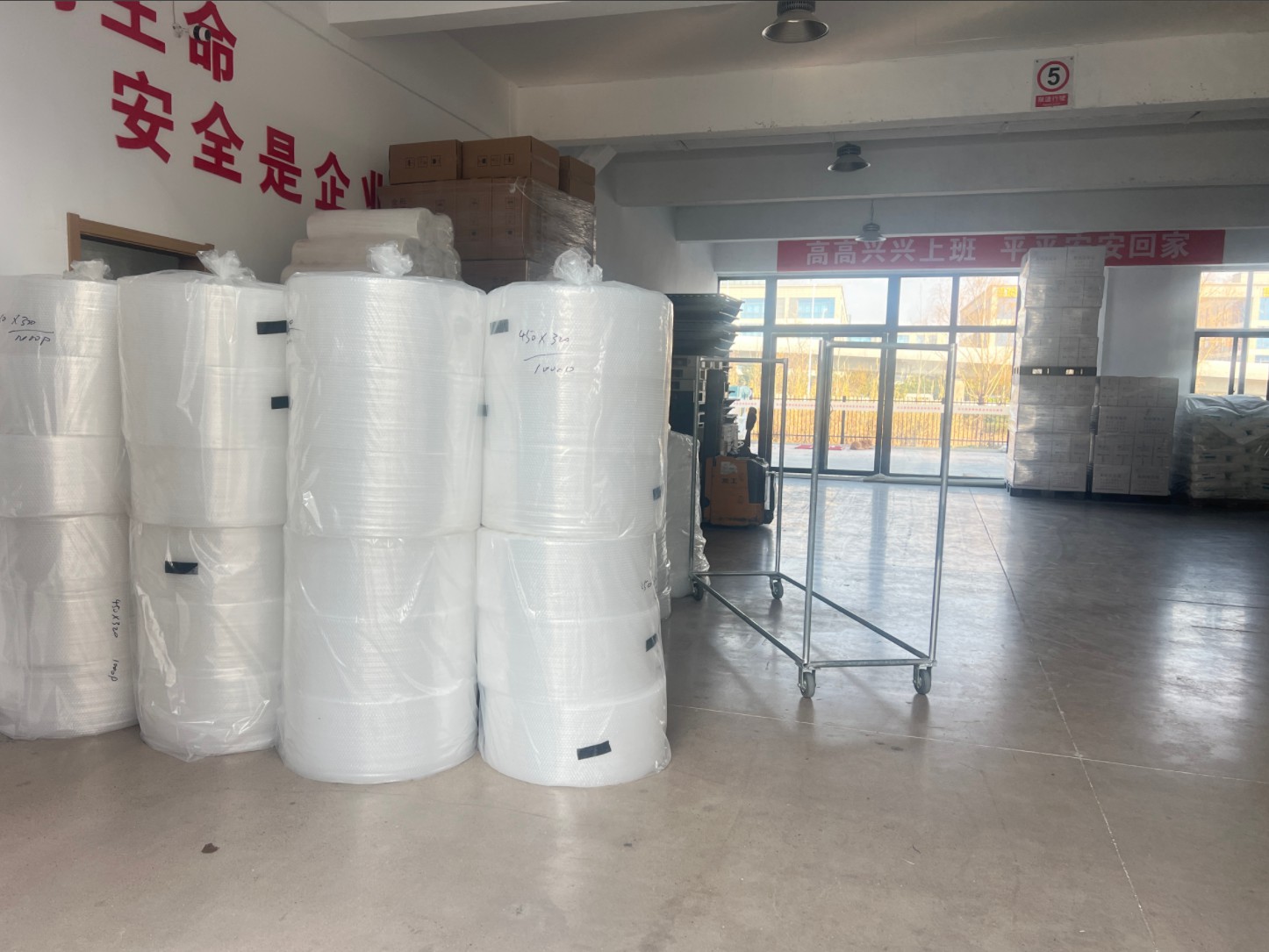 公司專業(yè)生產(chǎn)各種規(guī)格、顏色的拉伸纏繞膜、分切纏繞膜、保護膜、塑鋼纏繞膜、各種規(guī)格EPE珍珠棉卷材、板材、護角、定型減震包裝、打包帶、塑鋼打包帶、氣泡膜、低中高粘保護膜、熱收縮膜、保鮮膜、膠帶、珍珠棉保溫膠條、隔音(聲)片、阻尼膜、牧草膜、吹膜、制袋等各種塑料制品。